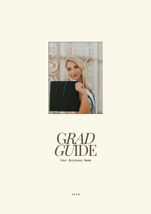 a canva template that will help you elevate your high school senior/college grad client experience, wrapping up your branding and style into an easy-to-follow guide.